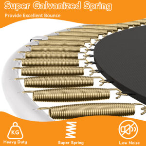 For your safety, our 14FT recreational trampoline with 10 sturdy poles and heavy gauge galvanized rust resistance metal construction is designed to protect your children from accidents or injury. The frame is made of galvanized pipes which are durable and rust resistant and also provide longer life. Also, it has 5 W-shaped big legs with 10 balanced points offering unparalleled durability and stability and letting your kids play on the trampoline delightedly.